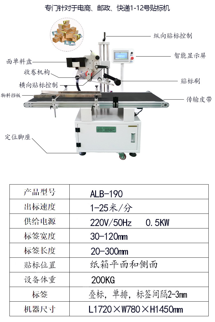 箱貼標一體機的貼標速度因設備型號、品牌以及具體配置的不同而有所差異。一般來說,常見的封箱貼標一體機貼標速度在每分鐘 40 - 200 件左右。例如,部分電商快遞專用的封箱貼標一體機,采用研控步進馬達控制送標器,其貼單速度可達 40 - 150 件 / 分,甚至在一些高效型號中,能穩定維持在較高水平,滿足電商行業訂單量大、處理速度要求快的特點。