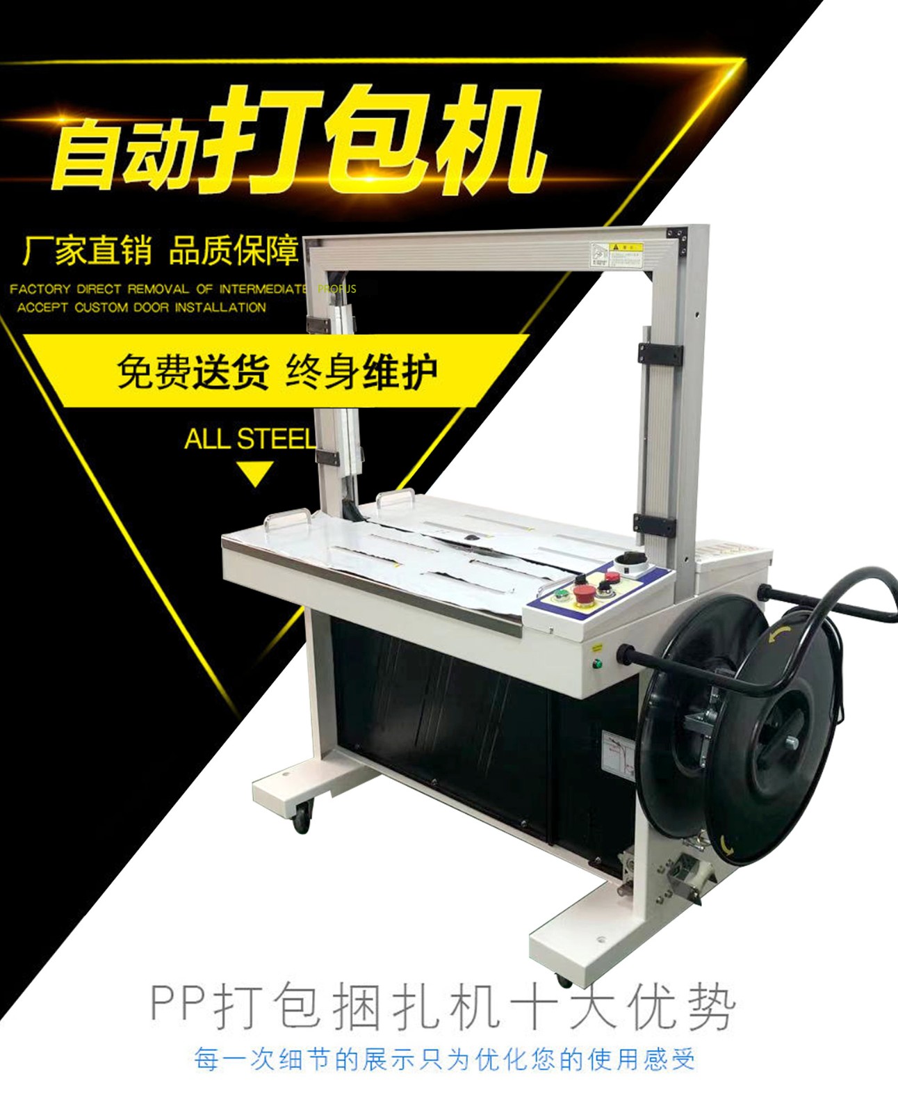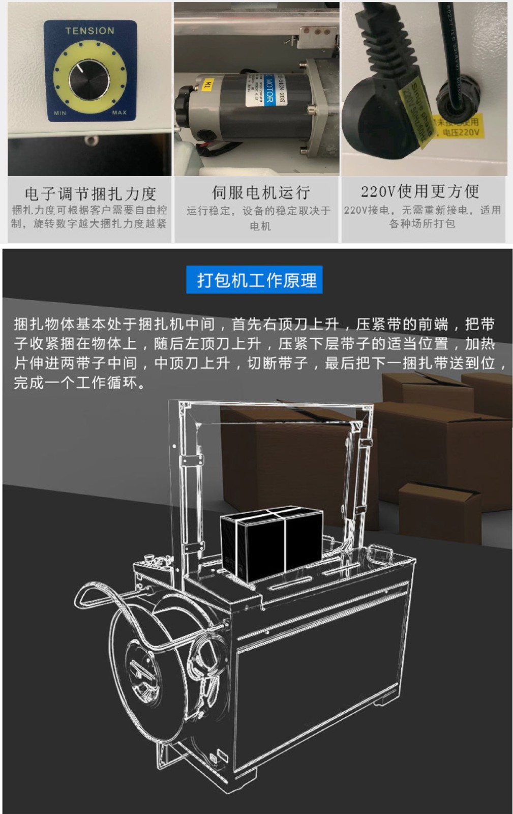 - 電子電器行業:電子電器產品的零部件和成品在包裝時,需要防止靜電、碰撞等損壞。全自動打包機可以提供穩定、可靠的打包服務,保護產品在運輸和儲存過程中的安全。