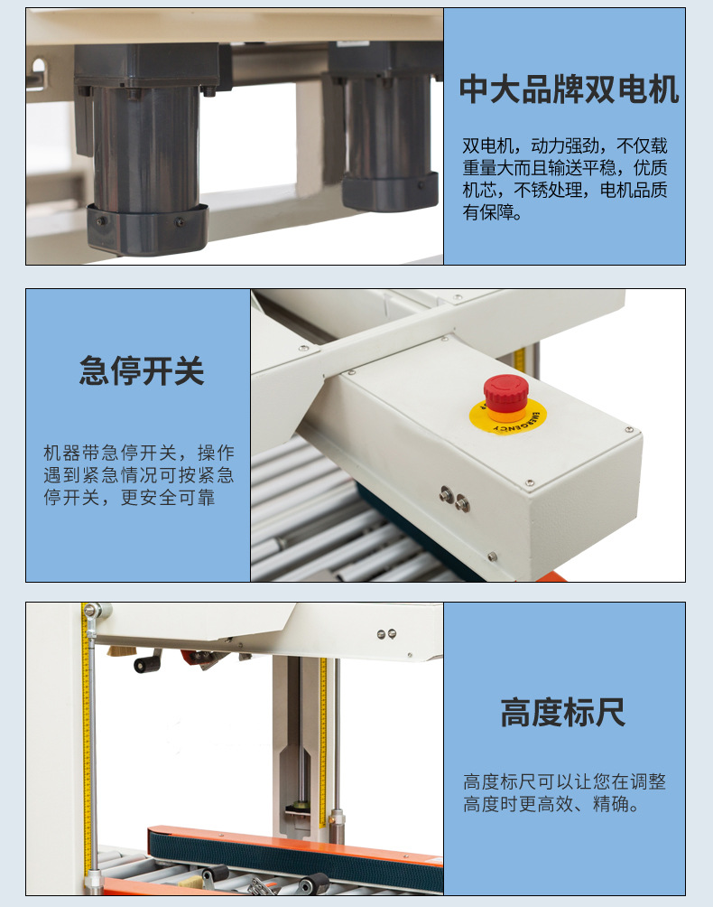 - 安全操作:在封箱機運行過程中,嚴禁將手或其他物品伸入輸送帶、封箱裝置等運動部件中,以免發生意外傷害。同時,要確保設備接地良好,防止觸電事故的發生。