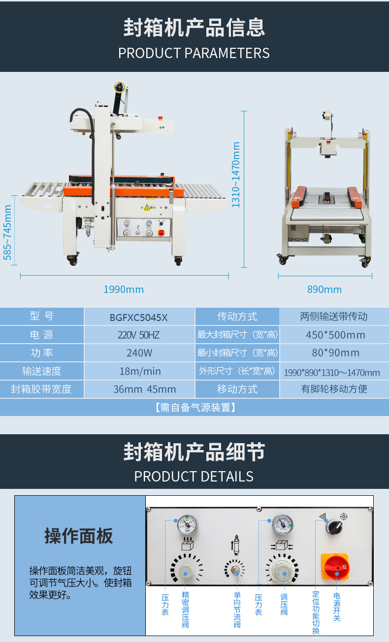 - 環境要求:封箱機應放置在干燥、通風、無塵的環境中,避免在潮濕、高溫或有腐蝕性氣體的場所使用,以免影響設備的性能和壽命。