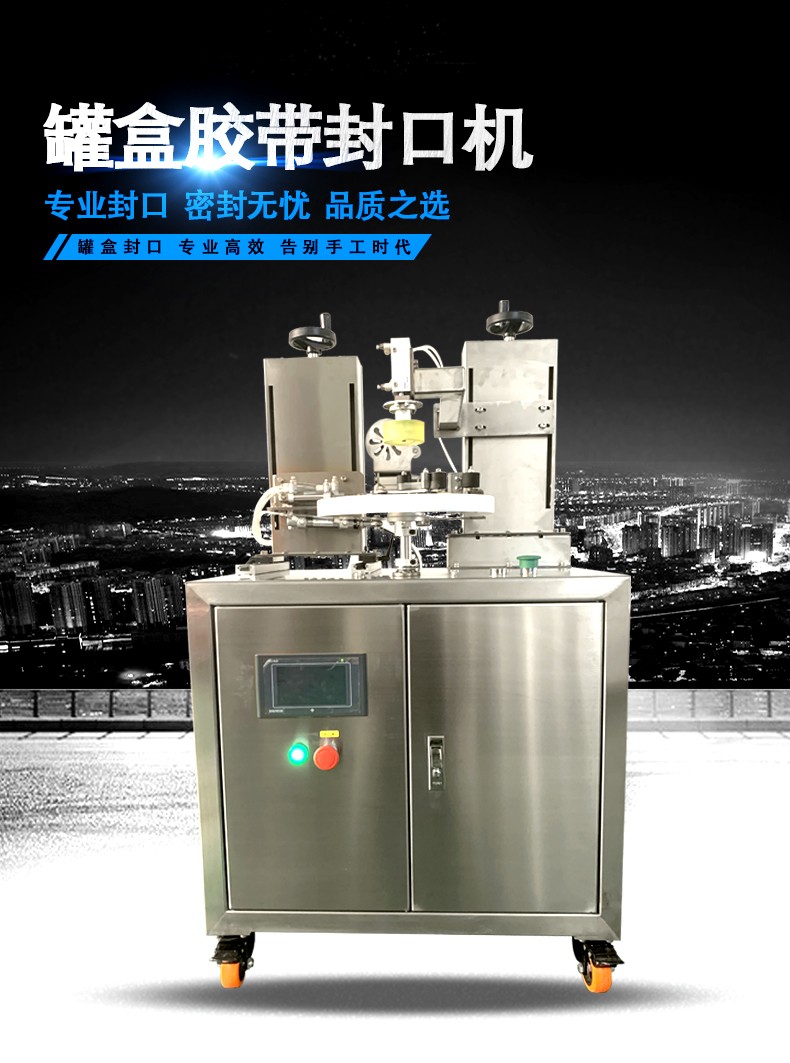 罐盒膠帶封口機(jī)是一種專(zhuān)門(mén)用于對(duì)罐盒等容器進(jìn)行封口的設(shè)備,主要是通過(guò)膠帶粘貼的方式來(lái)密封容器開(kāi)口。其工作原理是將膠帶從膠帶卷上引出,然后利用機(jī)械裝置將膠帶平整地貼合在罐盒的開(kāi)口邊緣,經(jīng)過(guò)滾壓等方式使膠帶牢固地粘在罐盒上,從而實(shí)現(xiàn)封口。 結(jié)構(gòu)組成 膠帶供給系統(tǒng):包括膠帶卷放置軸、膠帶張力控制裝置和膠帶引導(dǎo)部件。膠帶卷放置軸用于安裝膠帶卷,其設(shè)計(jì)要能適應(yīng)不同尺寸的膠帶卷。膠帶張力控制裝置可以確保膠帶在輸送過(guò)程中保持適當(dāng)?shù)膹埩?,避免膠帶過(guò)松或過(guò)緊。膠帶引導(dǎo)部件則負(fù)責(zé)將膠帶從膠帶卷準(zhǔn)確地引導(dǎo)到封口位置。 封口執(zhí)行機(jī)
