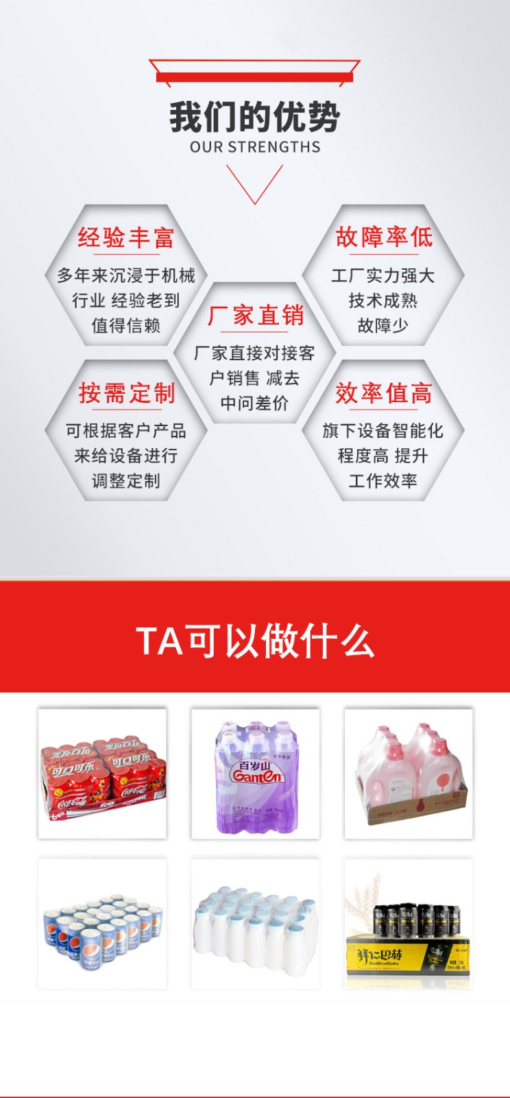 - 輸送速度:輸送速度決定了產品在加熱通道內的停留時間,從而影響薄膜的收縮效果。輸送速度一般在 0.5 - 10 米 / 分鐘之間可變。對于大型、復雜形狀或需要充分收縮的產品,通常會采用較慢的輸送速度,以保證足夠的加熱時間;而對于小型、簡單形狀的產品,可以適當提高輸送速度來提高包裝效率。