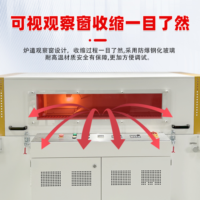 - 可視窗設(shè)計(jì):設(shè)備設(shè)有可視窗,能夠讓操作人員清晰地觀察到收縮過程,便于及時(shí)發(fā)現(xiàn)和調(diào)整包裝過程中出現(xiàn)的問題,確保包裝質(zhì)量。