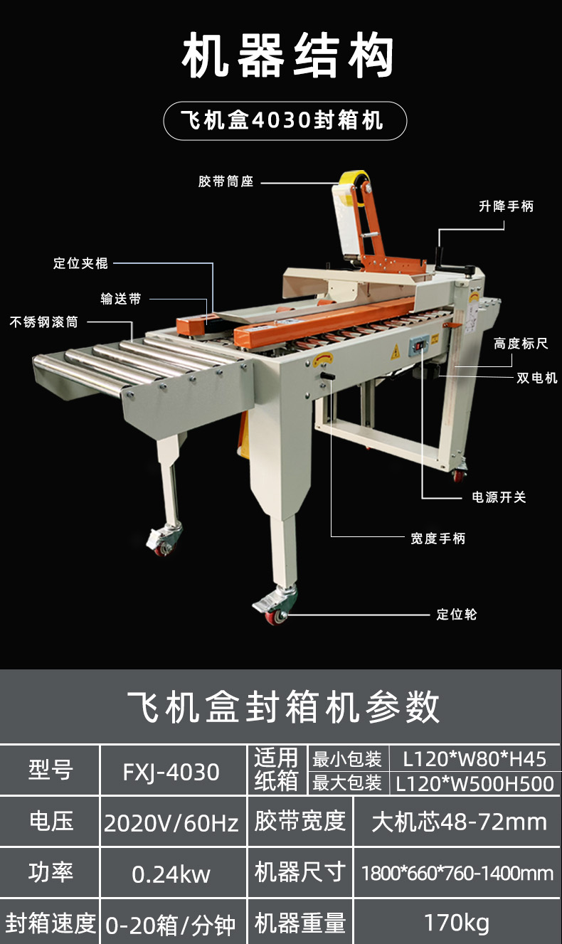 4030型飛機盒電商專用快遞封箱機膠帶郵政1-12號紙箱包裝機