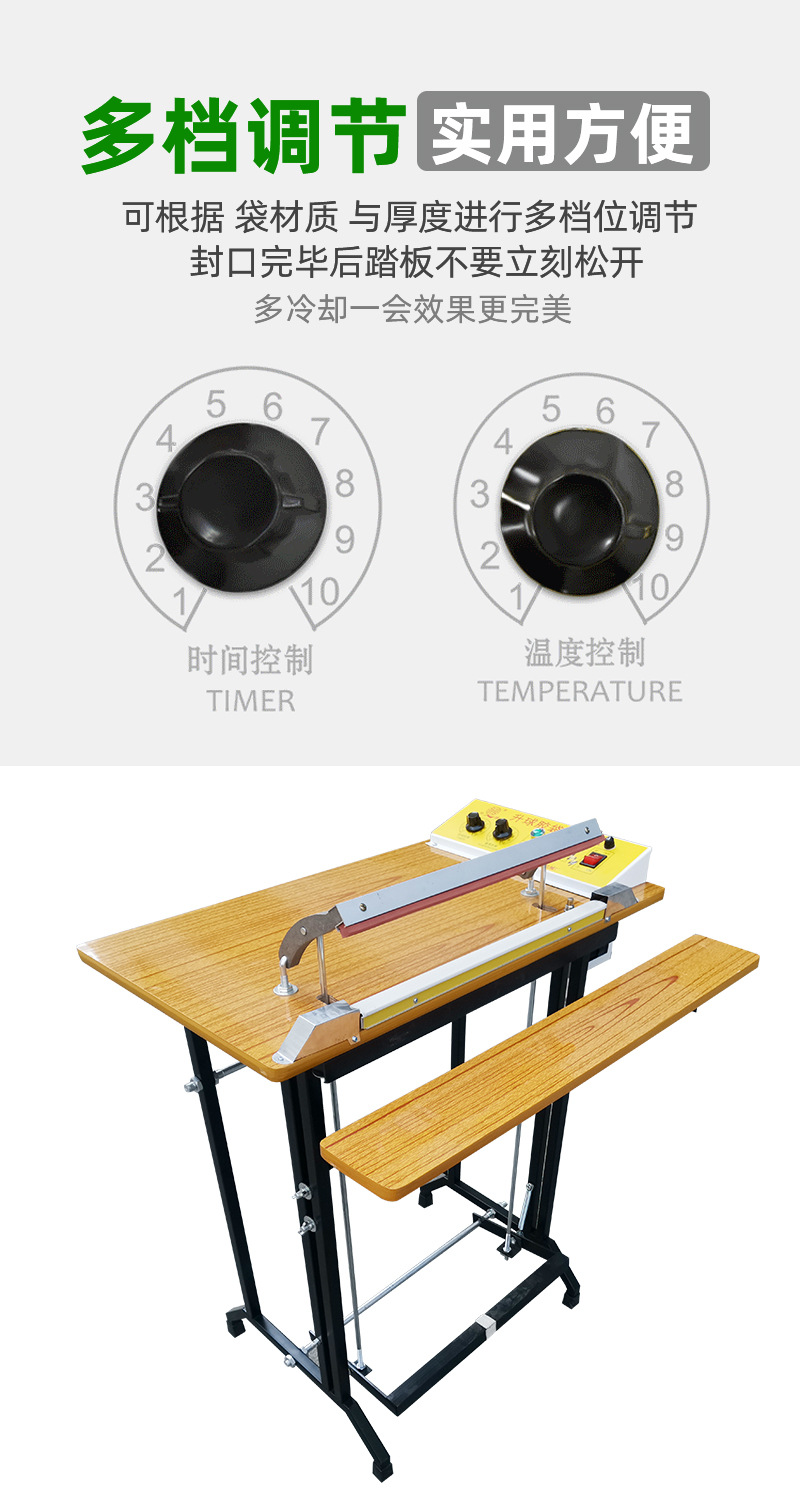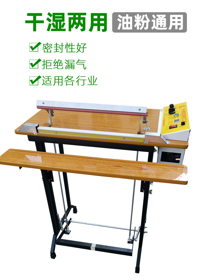 腳踏封口機利用電氣脈沖技術,使原有的工作時間從2-4秒縮短為0.2秒,是一種投資少,效益高,封口長度長,操作簡單,含專利的高效益封口設備,能廣泛用于食品,醫藥,土特產,電器軟件,工廠,商店,服務行業。