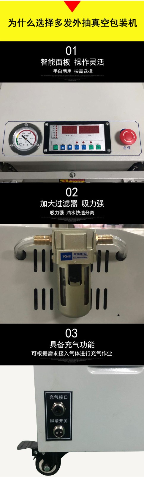 真空包裝機包括食品真空包裝機都是由真空系統、抽充氣密封系統、熱壓封合系統、電器控制系統等組成。外抽式真空包裝機是將包裝袋內抽成低真空后,當即自動封口,由于袋內真空度高,殘留空氣極少,抑制細菌等微生物的繁殖,避免了物品氧化、霉變和腐敗,同時對某些松軟的物品,經全自動真空包裝機包裝后,可縮小包裝體積,便于運輸和貯存。
