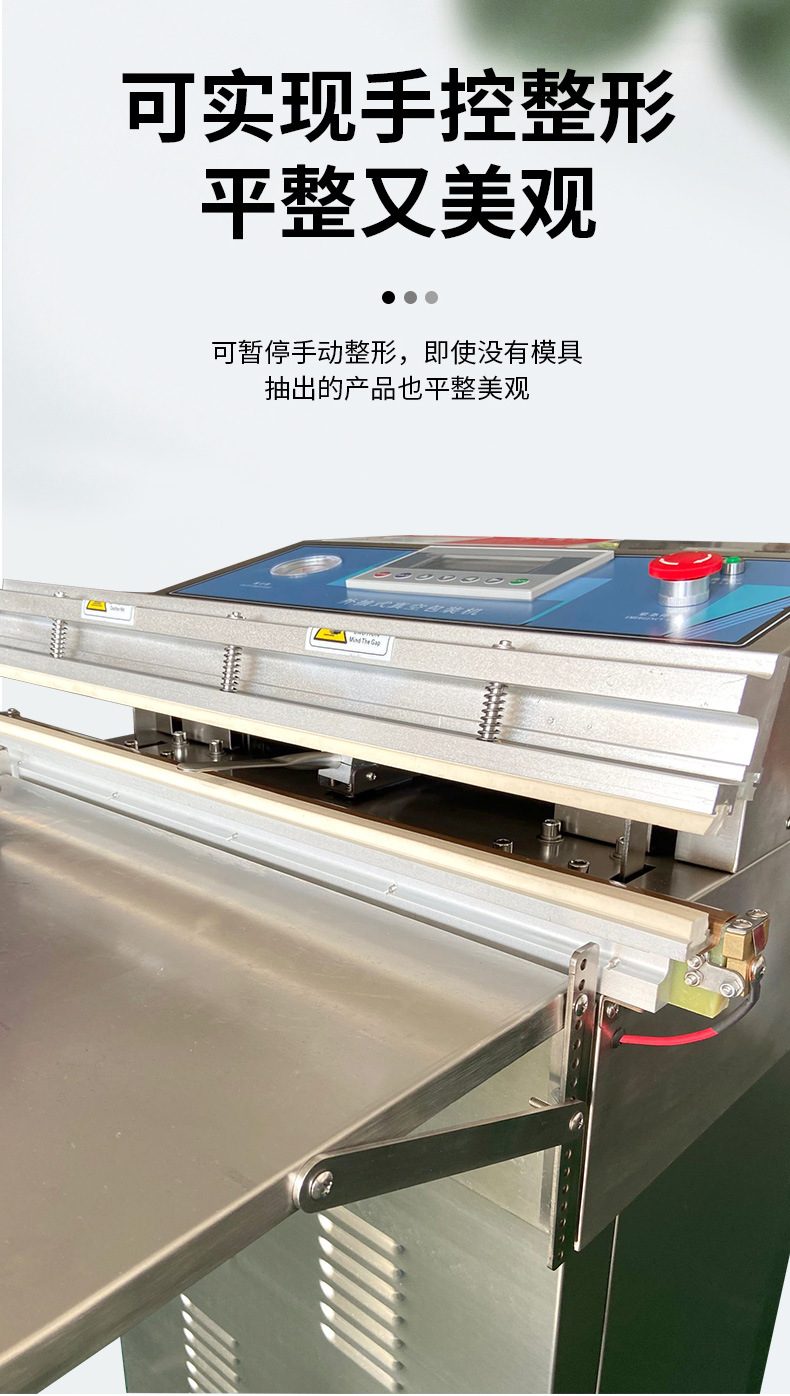 真空包裝機能夠自動抽出包裝袋內的空氣,達到預定真空度后完成封口工序。亦可再充入氮氣或其它混合氣體,然后完成封口工序。真空包裝機常被用于食品行業,因為經過真空包裝以后,食品能夠抗氧化,從而達到長期保存的目的。