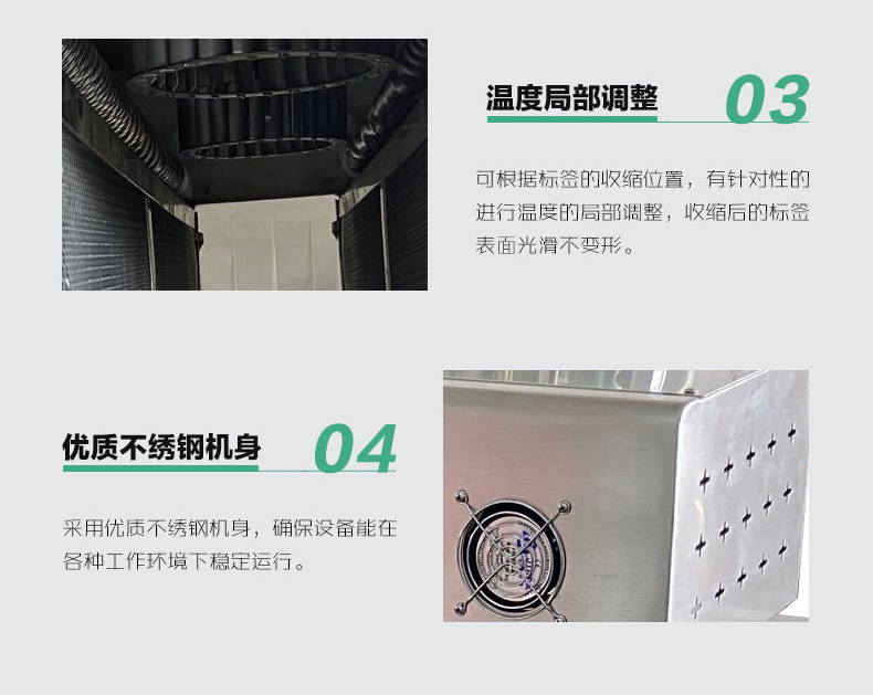 熱收縮機(jī)的主要應(yīng)用領(lǐng)域是食品、飲料、醫(yī)藥和化工行業(yè)。在這些行業(yè)中,熱收縮機(jī)可以用于各種包裝的收縮,如瓶裝、罐裝、袋裝等 熱收縮機(jī)的功能和工作原理 熱收縮機(jī)具有送料、襯料、封切、收縮、冷卻、定型的全自動(dòng)功能。熱收縮機(jī)采用國(guó)際先進(jìn)的薄膜恒溫?zé)岱饧夹g(shù),封口清晰牢固