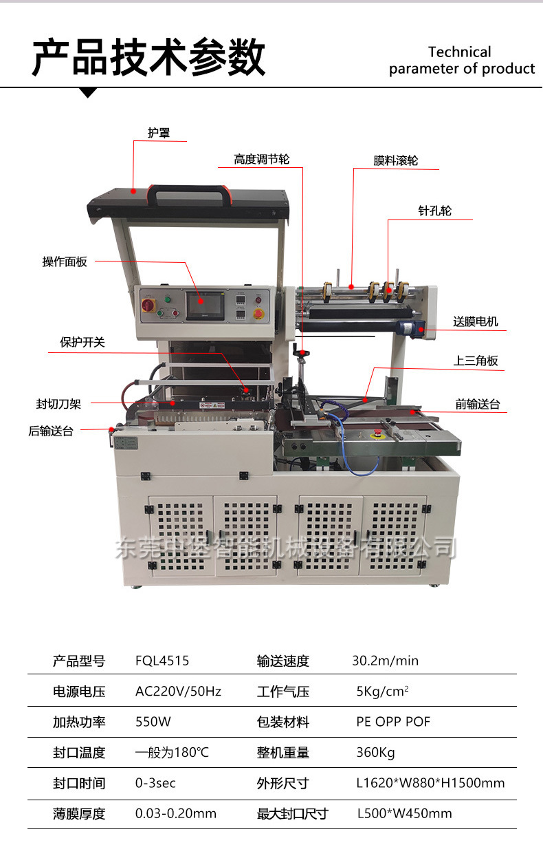 封切機是全自動無人化操作的包裝機,廣泛用于批量生產包裝的流水作業,工作效率高,自動送膜打孔,自動套膜封切,自動卷取廢料;只需手動調節導膜系統以及手動調節進料輸送平臺,適用不同寬度及高度的產品