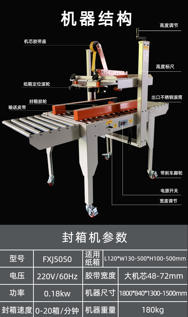 封箱機,也稱為Case sealer machine,主要用于紙箱的封箱包裝。它們不僅適用于單機作業(yè),也可以與流水線配套使用,是包裝流水線作業(yè)中不可或缺的設(shè)備。封箱機的功能包括自動折疊、粘合和封口紙箱,通過先進的感應(yīng)和控制技術(shù),能夠自動檢測和調(diào)整紙箱尺寸,按照設(shè)計要求進行折疊和封口操作,大大提高了包裝的效率和一致性,減少了人工操作的錯誤和勞動強度。