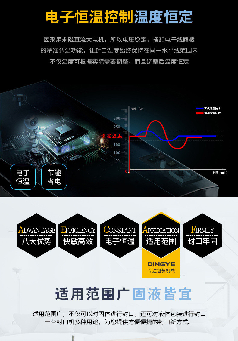 封口包裝機的主要功能是將充填有包裝物的容器進行封口。?這種機械在產品裝入包裝容器后,?通過不同的封口方式,?如遠紅外線輻射直接加熱PVC/POP收縮膜,?達到完美的收縮包裝效果,?從而實現密封、?防塵、?防潮和防盜性。?封口包裝機的應用范圍廣泛,?包括食品、?餐具、?熟食品、?肉類、?方便面、?面食、?飲料、?糖果、?文化用品、?超市商品、?五金工具、?日用百貨、?工藝品、?化工產品、?木制品、?印刷制品、?塑料制品、?玻璃制品、?電子元件等產品