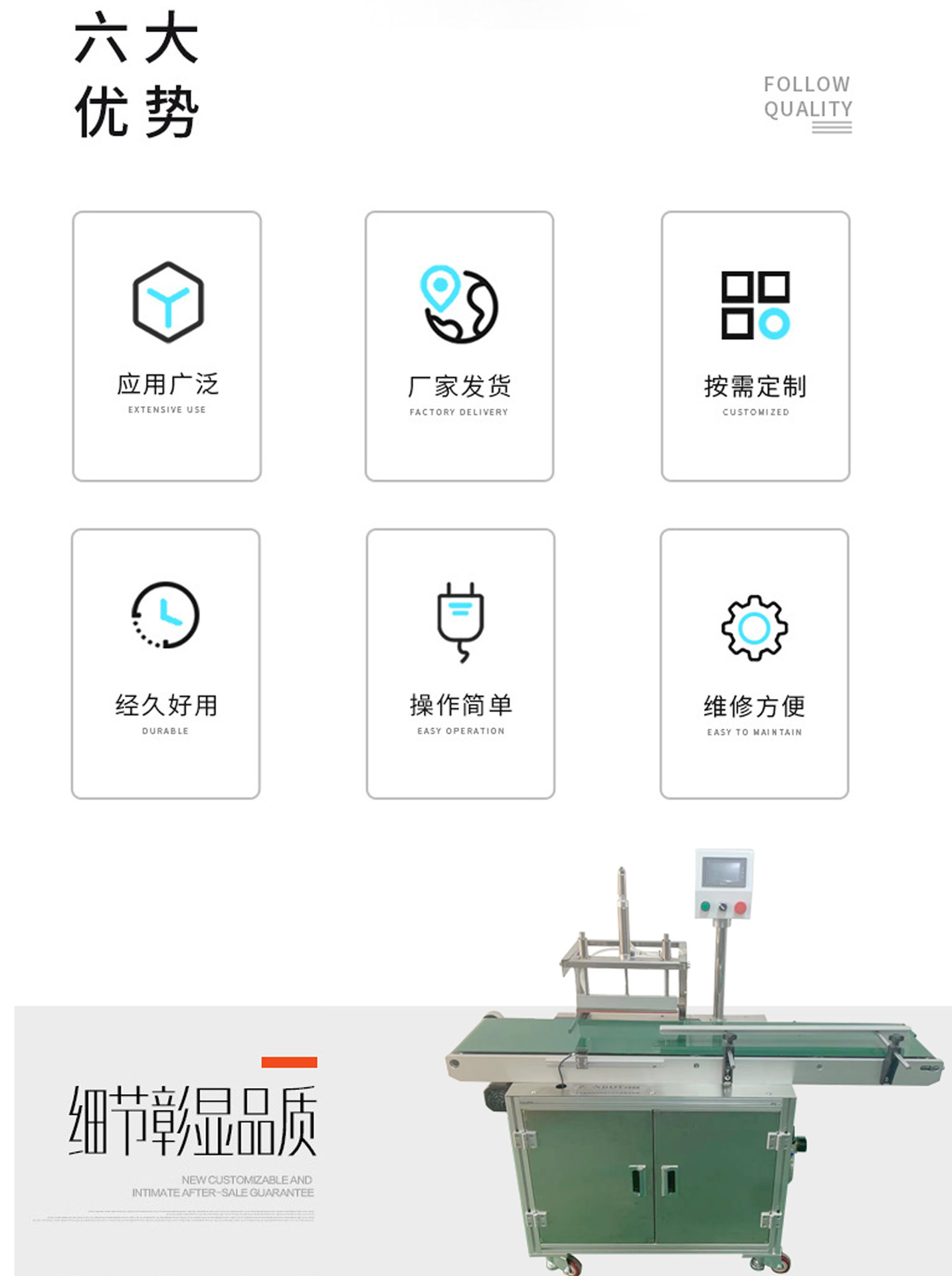 主要用于對塑料杯、塑料盒以及塑料瓶的填料,相應材料復合膜封口制品的生產。如果凍、果汁、牛奶、酸奶、飲料、快餐食品等物料的填充及封口。可適應于不同粘度的液、漿的充填物,可適應不同形狀,容量的包裝容器。