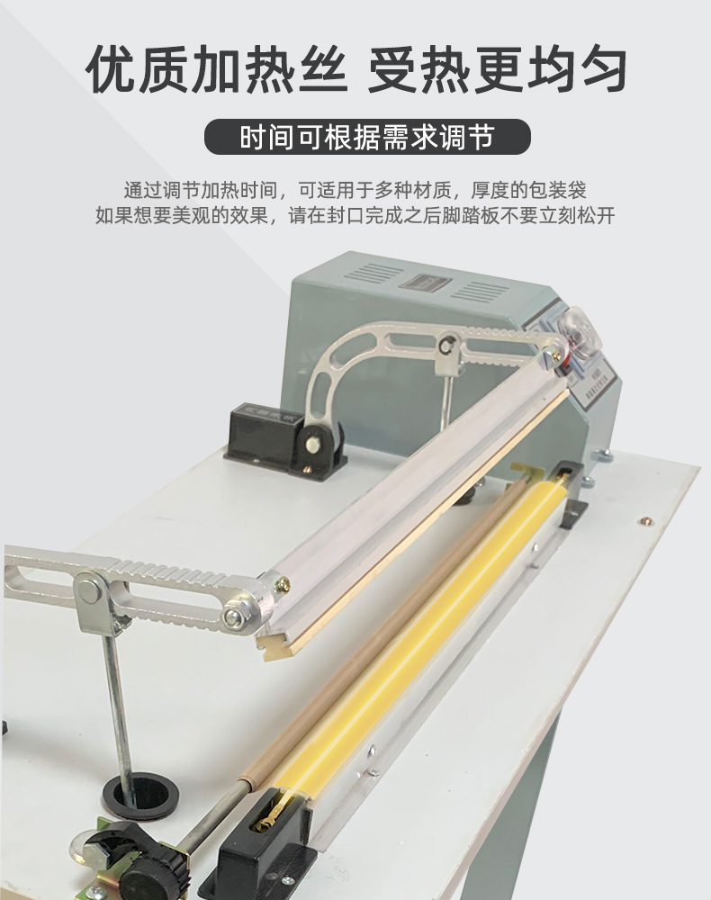 腳踏封口機是根據(jù)國內(nèi)外先進的機型基礎(chǔ)上,重新設(shè)計制造而成,適用于所有塑料袋薄膜封口及制袋,是食品廠,化妝品廠,藥廠等單位的理想封口設(shè)備。
