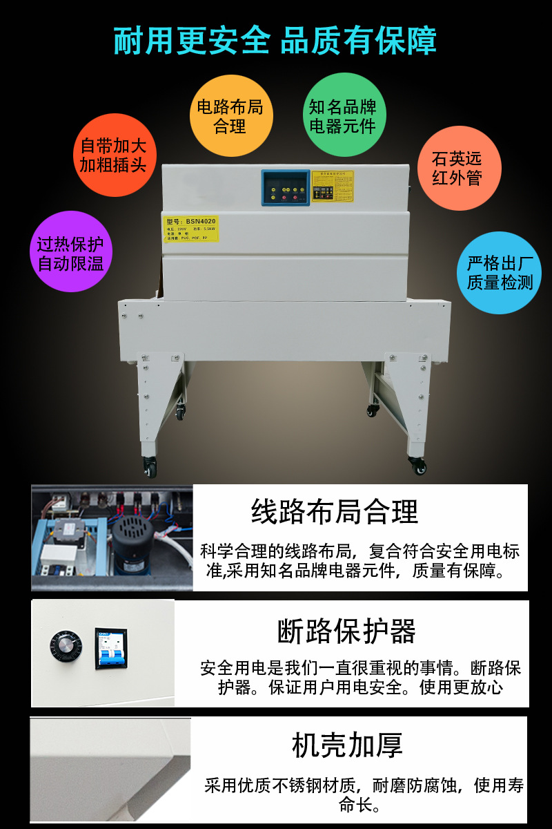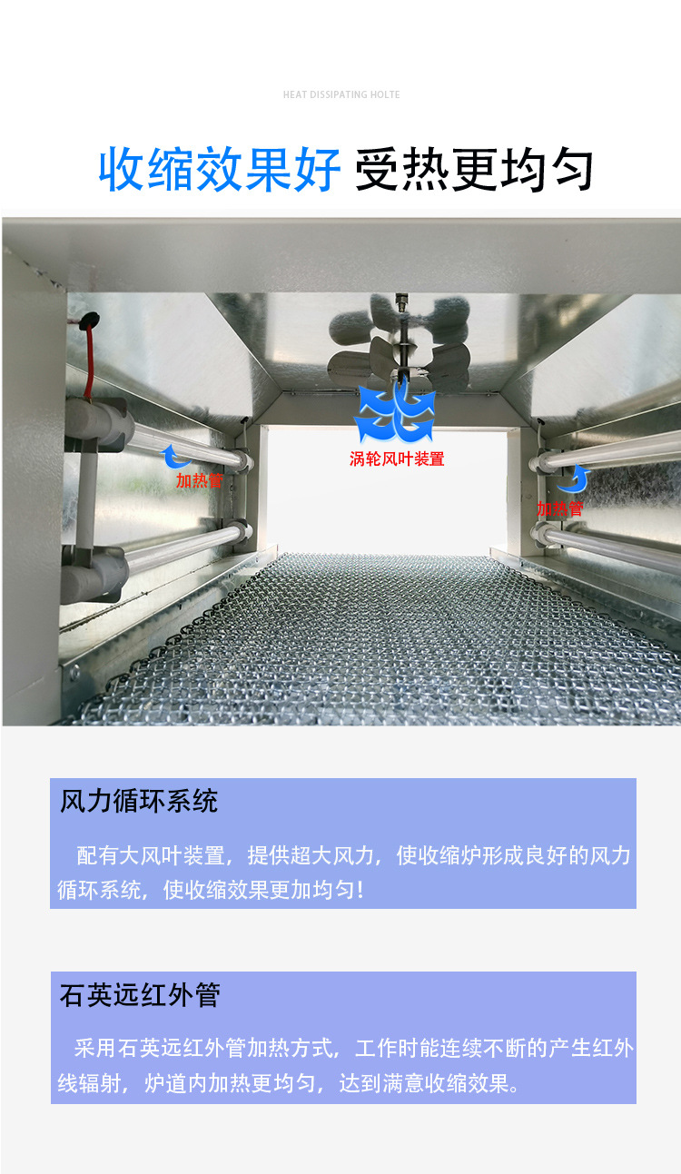 熱收縮包裝機還廣泛應用于食品、?飲料、?醫藥、?日化、?五金、?木制品、?文化用品、?印刷制品、?塑料制品、?玻璃制品、?電子元件等產品的單一、?集合或組合包裝。?這些機器通常具有自動封口和切斷功能,?可以將產品手工放置到位后自動完成封口過程,?也可通過時間控制器控制定時封口,?切斷后產品自動輸送出到收縮爐道里,?實現全自動在線收縮包裝。?熱收縮包裝機的使用不僅提高了包裝效率和產品質量,?也降低了包裝成本,?是一種高效且經濟的包裝解決方案